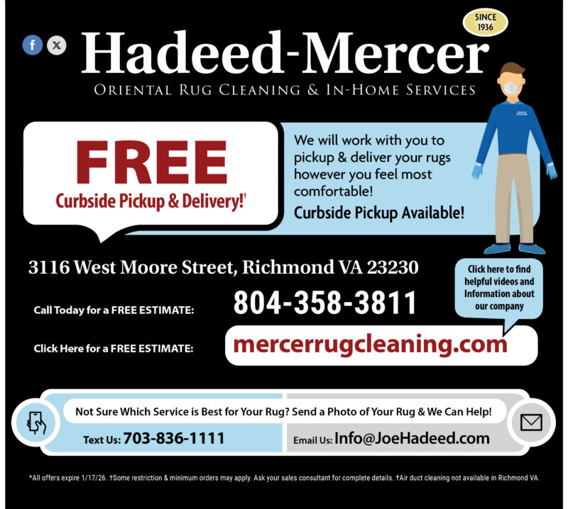 Now is the perfect time to refresh your rugs after the holidays and restore their beauty. This New Year special won’t last long, so take advantage while you can! Contact Hadeed-Mercer Carpet today to schedule your rug cleaning.